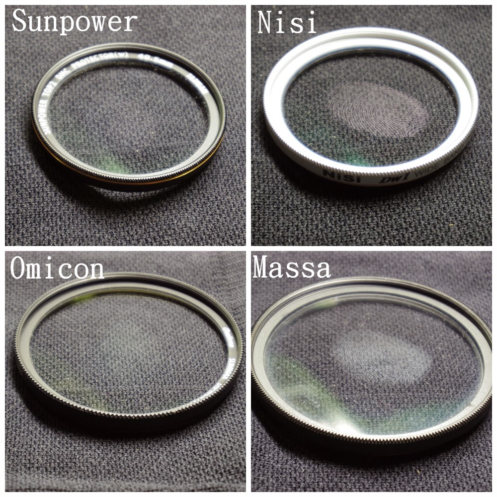 後記:我四款濾鏡的來源,Nisi是最早無知時候買的,MASSA是買鏡頭送的,Sunpower是我知道的第一款台灣平價保護鏡,Omicon則是我覺得他的盒子可以放記憶卡很不錯所以買了入門款的保護鏡。