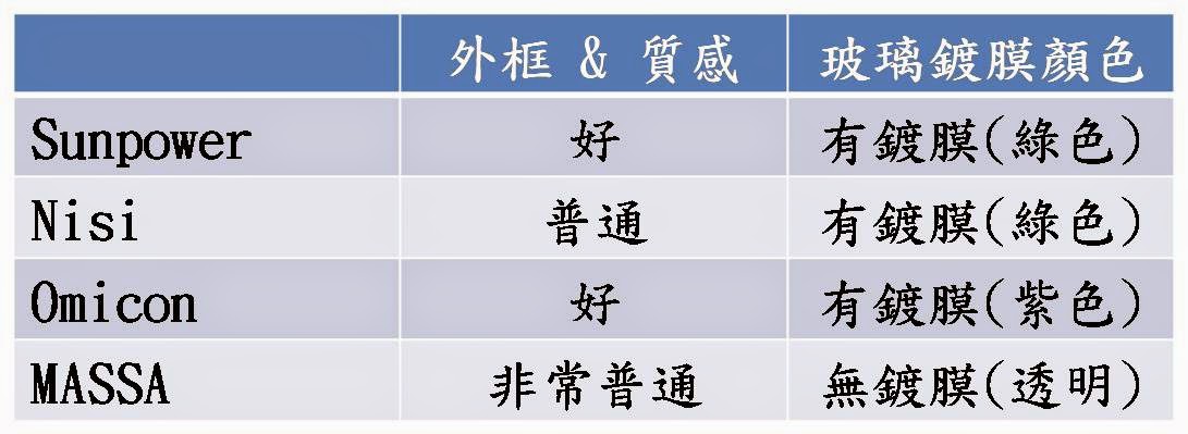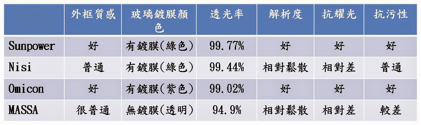 - [評測] Sunpower,Omicon,Nisi,Massa 保護鏡比較
