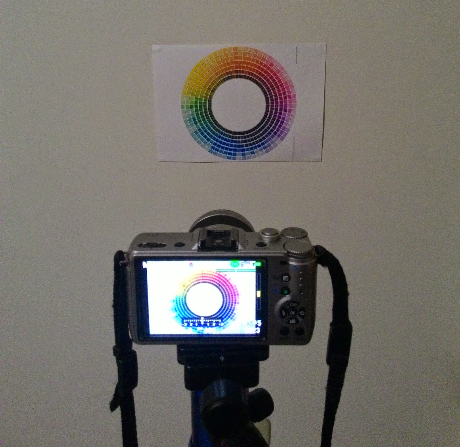 人工光源的條件下對,固定相機的拍攝條件對著色表拍攝五張jpg照片。這五張jpg照片分別用ImageJ計算其三原色RGB的強度,然後再進一步計算透光率。