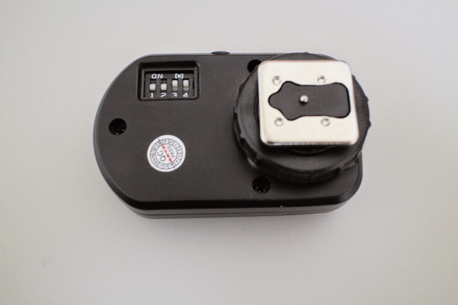 Meking(美鏗)觸發器下方有個可以調整頻率的位置,有1到4個號碼每個號碼都有相對的撥桿可以調整,只要將觸發器和接收器號碼相對撥桿的位置調整到一樣就可進行聯結。此外這款觸發器有熱靴鎖可以將觸發器穩定固定在相機上。接收器上方有個安裝閃光燈的熱靴孔和調整頻率的撥桿,另外在接收器上也有個測試鍵可測試安裝在接收器上的閃光燈可否觸發。