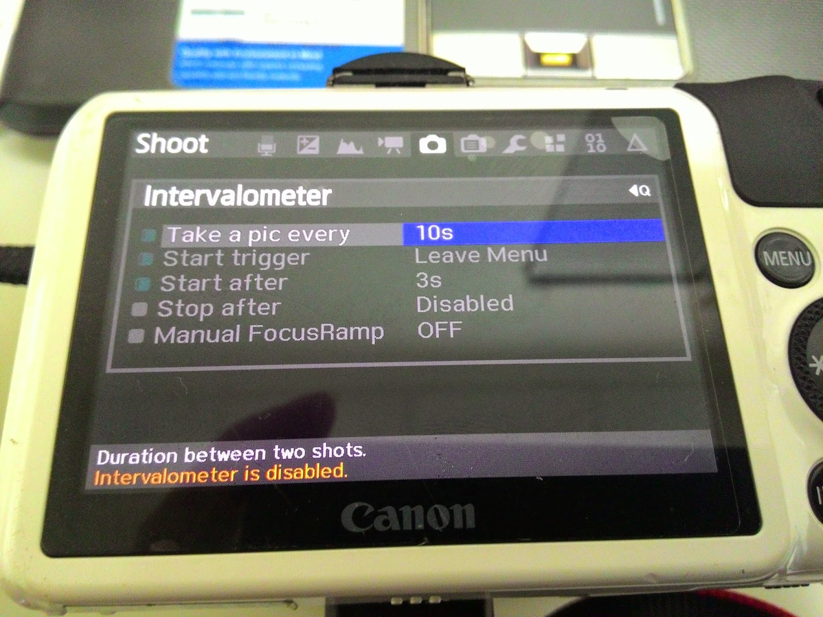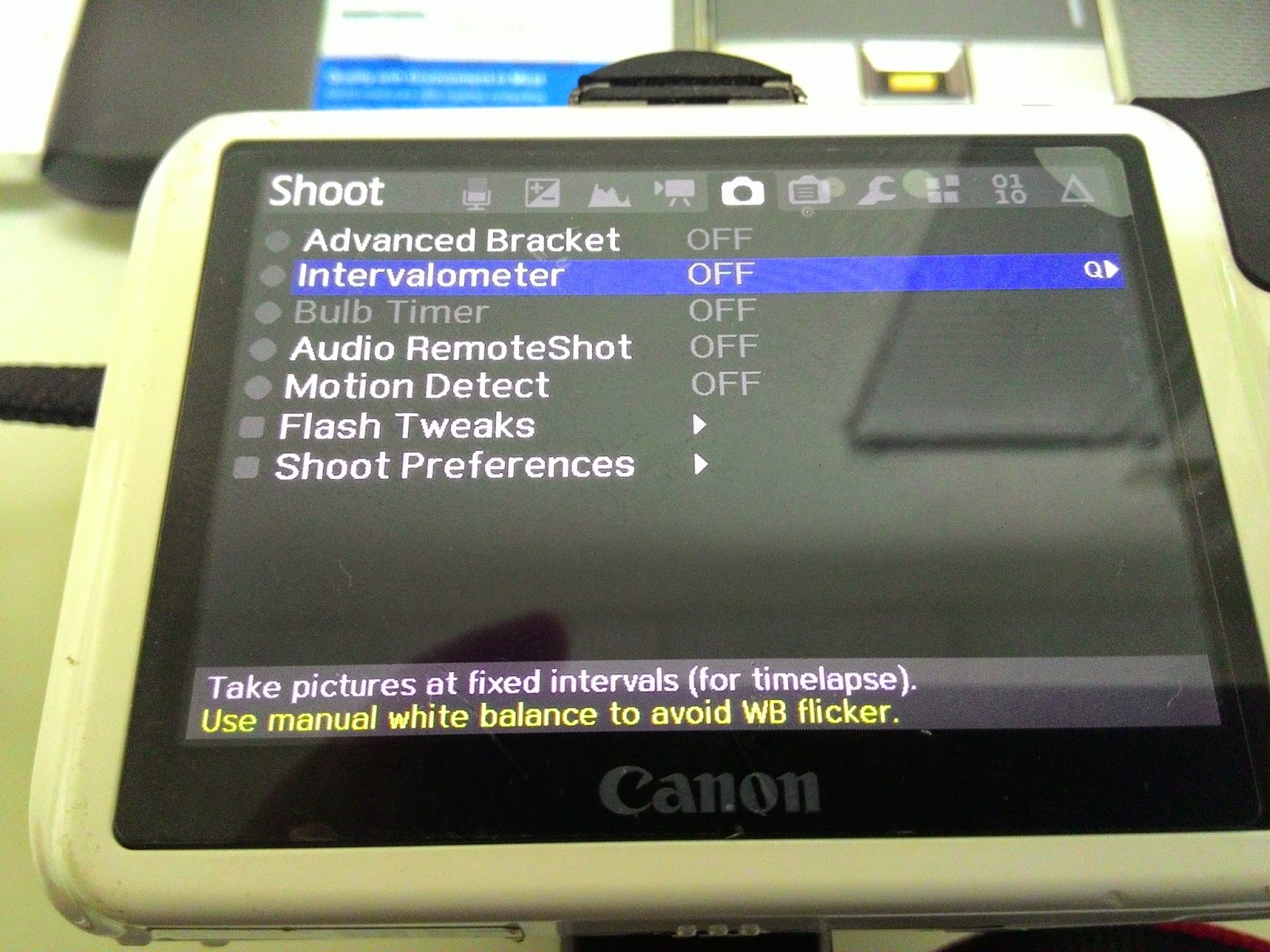Shoot > Intervalometer > 手指點選Q的位置 > 進入設定選單