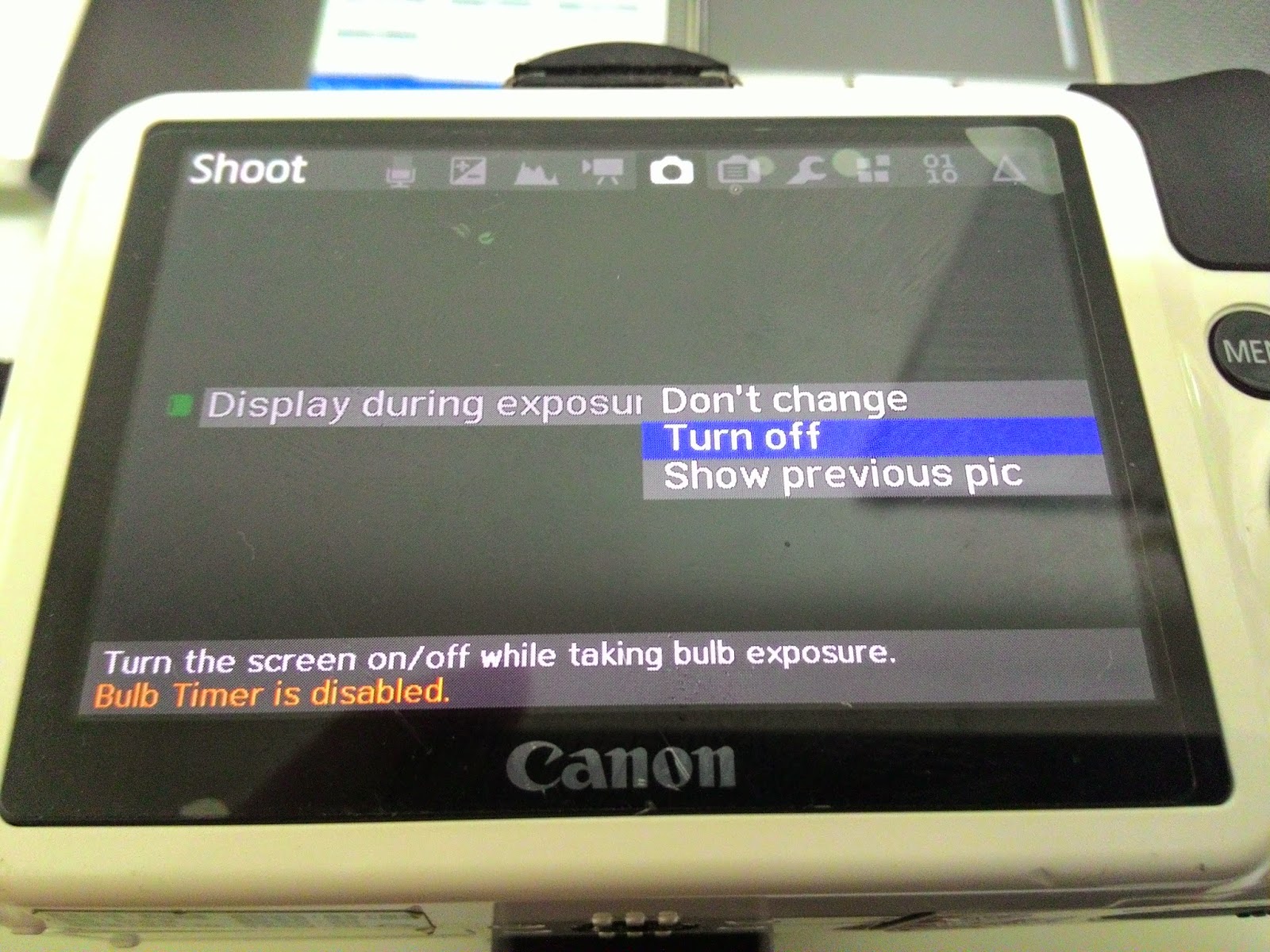 進行B快拍攝時候建議Display during exposue選單選擇Turn off (拍攝時關閉螢幕可省電)