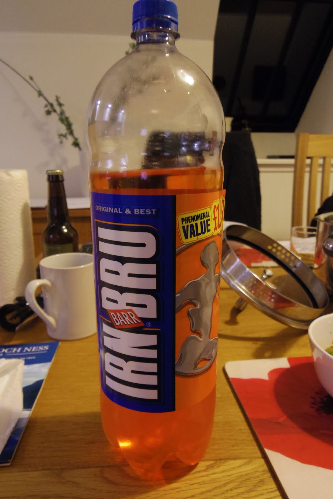 蘇格蘭當地還有一種非常流行的飲料叫做IRNBRU,基本上在各類超市都可買到。這飲料喝起來的味道很難具體的形容出來,蠻好喝的有點像是冰淇淋汽水加上芬達的混合體,有趣蘇格蘭的朋友非常推薦可買小罐嘗試。