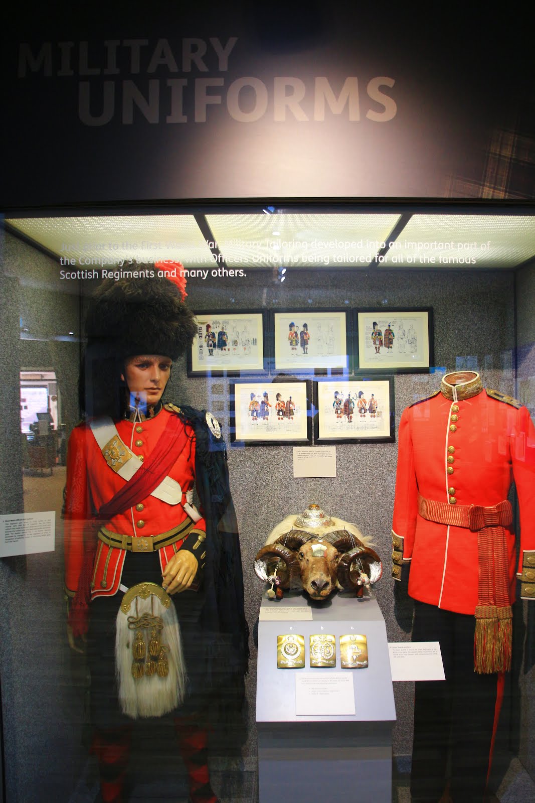 進去展示大廳的地方除了有販賣部以外,Kinloch Anderson Museum內展示了他們公司到現在六代的經營者也有英國皇室成員穿過的相似格紋,還有他們曾經幫不同單位設計過的格紋與曾經設計過的格紋手稿看起來非常有歷史感。
