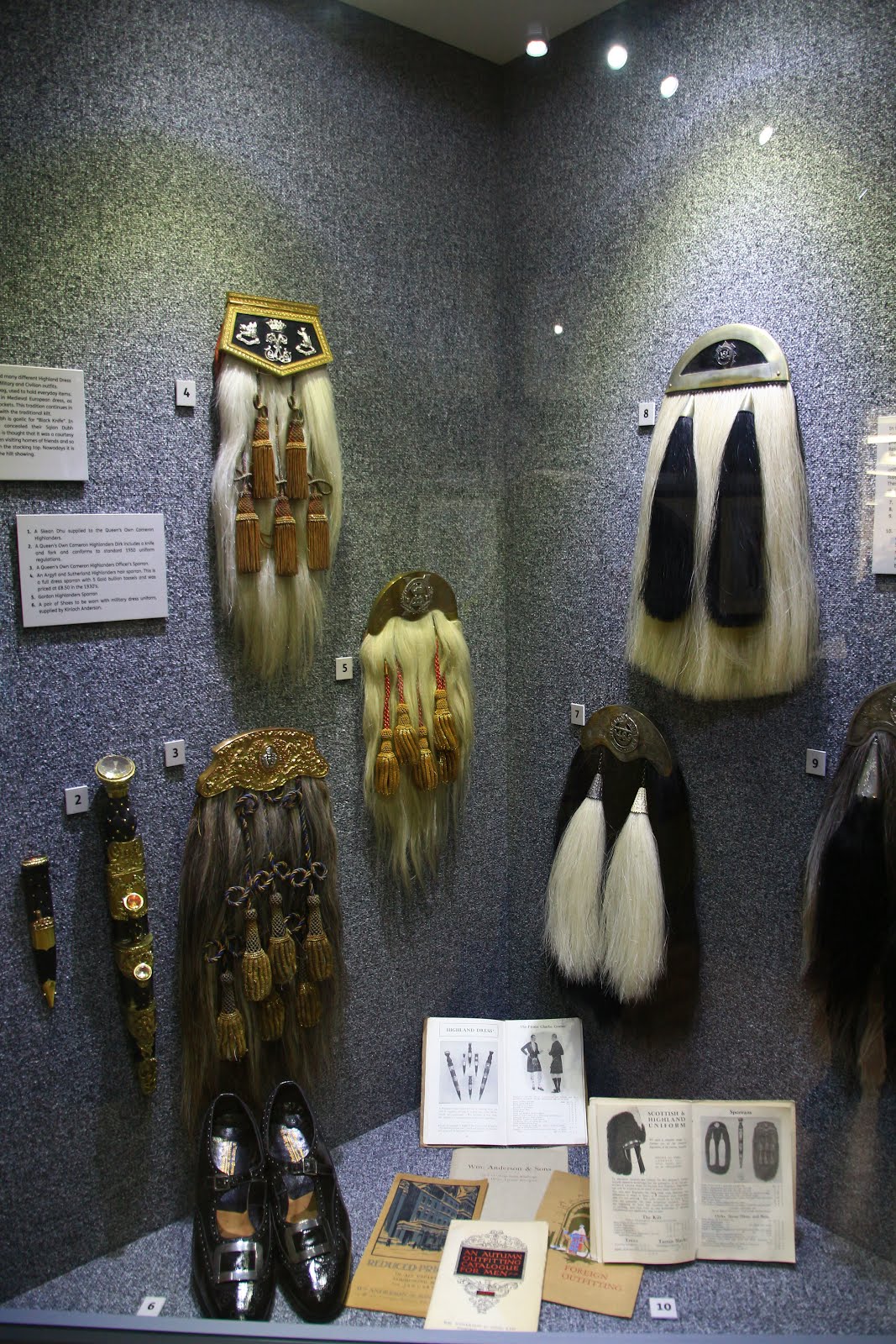 Kinloch Anderson除格紋相關商品外還有一個重要的業務就是製作蘇格蘭傳統服飾,在這裡有展示整套的傳統蘇格蘭服飾, 各式各樣的服飾配件和這種格紋搭配的服裝的展示。