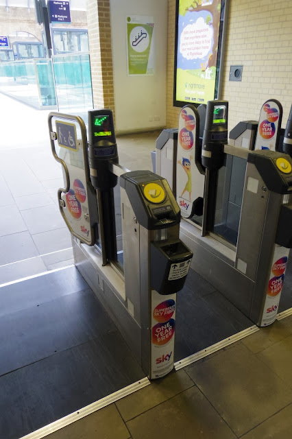 到英國後在上車前可提前先到車站取票,在車站可以找到自動購票取票區(上面會標示有取預訂票的機器,應該所有的都有這個功能)。這時候那封E-mail上的訂票代號就派上用場,依照指示輸入購票代碼與插入當時刷卡的信用卡 (這點很重要一定不要忘了)。之後機器就會吐出所有你訂購的票據和收執聯,這時候要確認是否所有取得,如果沒有取得可以拿你mail上的訂票紀錄去找站務人員幫忙 (建議訂票紀錄儲存在手機上或是列印出來)。