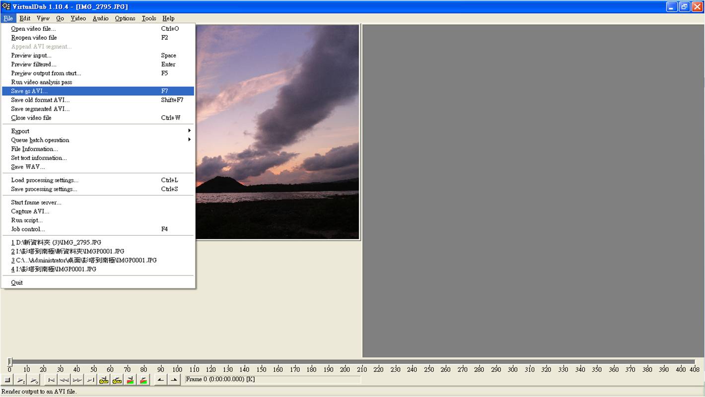 (六)輸出影片檔:在file中選擇save as AVI就可以將剛剛所有的設定輸出成影片。